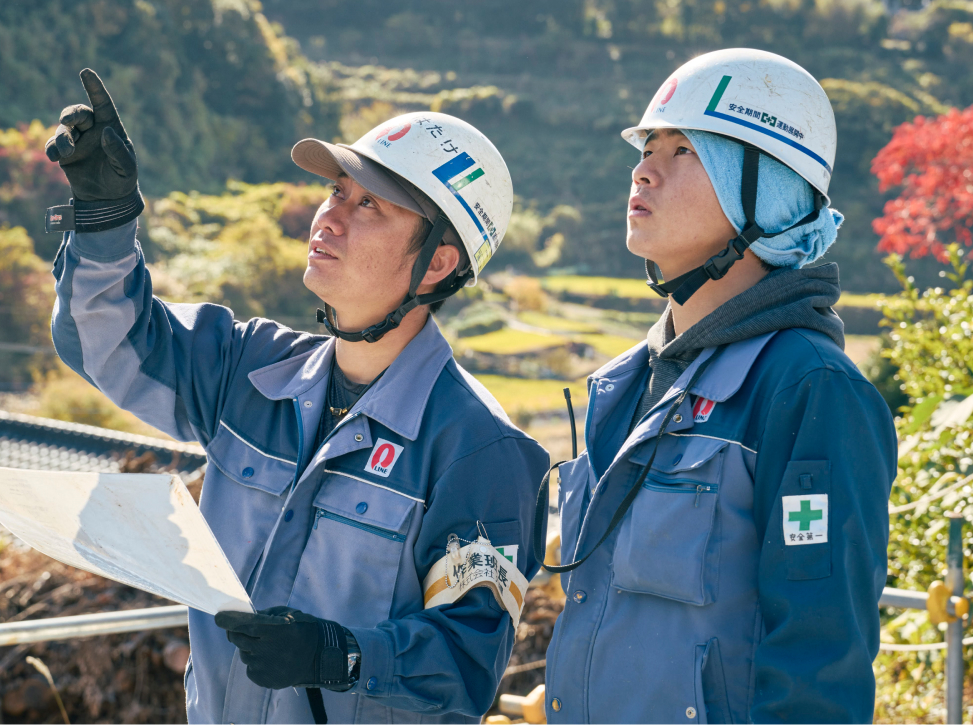 高所作業や屋外作業が中心となるため、体力や集中力が求められますが、その分自分たちの仕事が街の「あたりまえ」を支えているという大きなやりがいがあります。